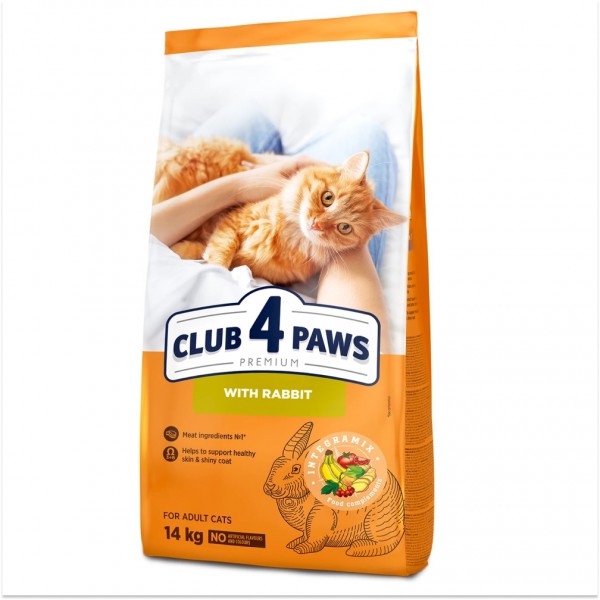 B4630301 " />Club 4 Paws Adult Cats Rabbit - сухий преміум-раціон із кроликом. Він ідеально підходить для котів віком від одного року та має безліч переваг для їхнього благополуччя.