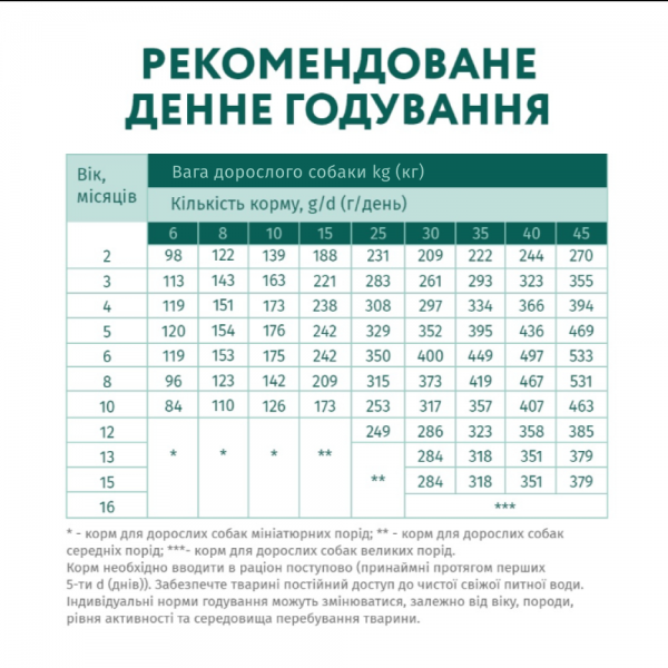 - Раціон містить збалансовану кількість кальцію, фосфору та вітаміну D3, що сприяє правильному розвитку кісток і зубів;