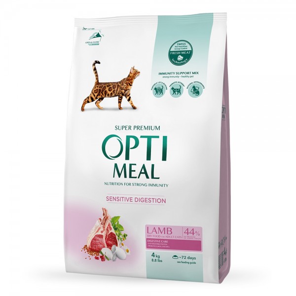 Мітки: Optimeal, сухий корм, для котів, з ягням, для чутливого травлення