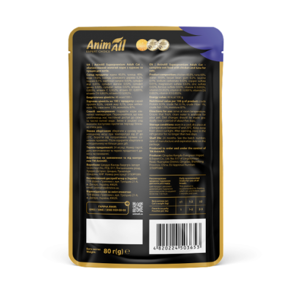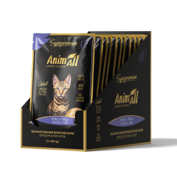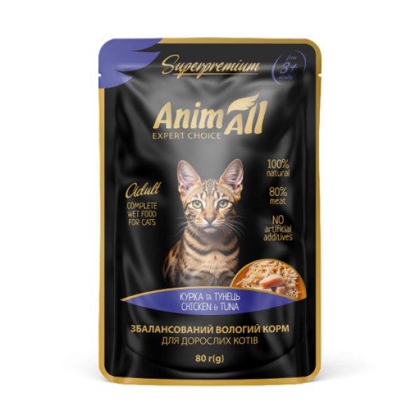 184394 " />AnimAll Вологий корм пауч «Тунець з куркою» – гармонія смаку та користі для вашого кота!