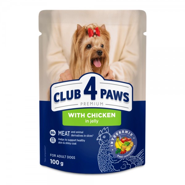 B5510111 " />Club 4 Paws Premium Adult Dog Small Breeds with Chicken in jelly - це ідеальне поєднання смаку та поживності для вашого чотирилапого гурмана. Вологий раціон був розроблений для тварин малих порід вагою до 10 кг і віком від 1 року.