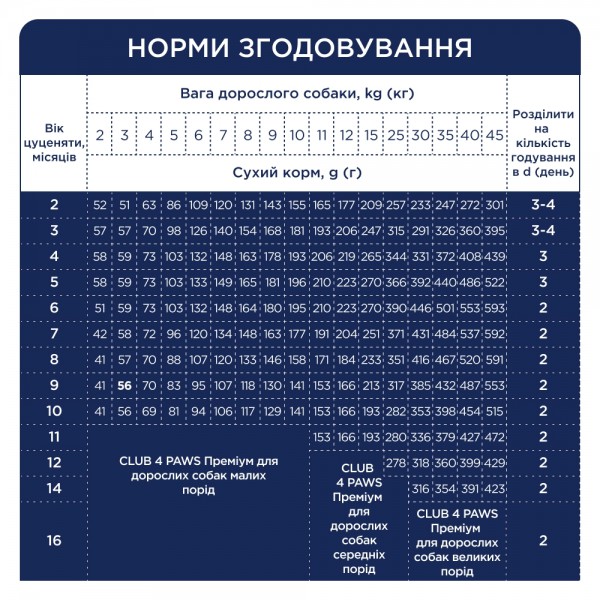 - Формула 30/16 збалансована для щоденного меню юних вихованців.