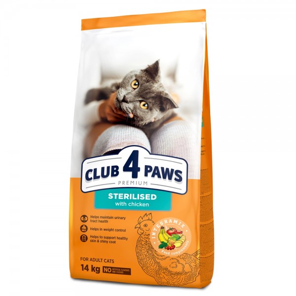 Особливості сухого раціону Club 4 Paws Adult Cats Sterilised для стерилізованих котів: