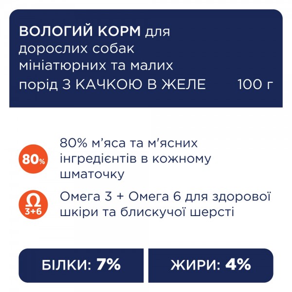 Мітки: Клуб 4 Лапи, вологий корм, для собак, малих порід, з качкою в желе, з качкою